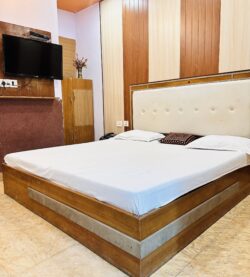 Elegant room with a king-sized bed and city views, ideal for business travelers or couples.